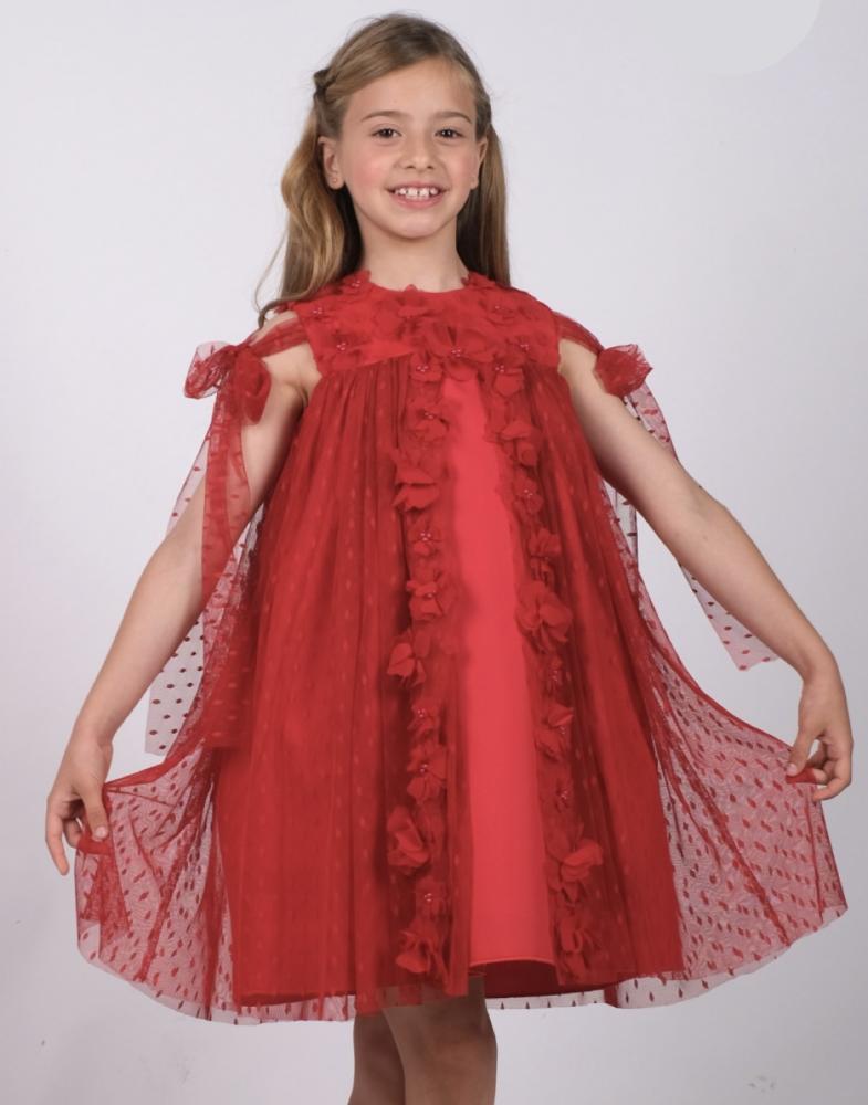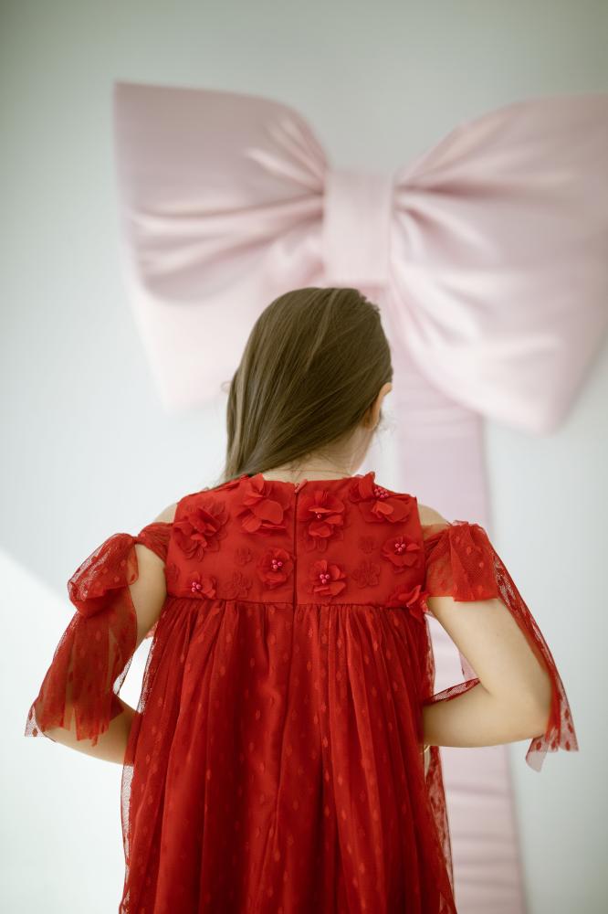فستان مناسبات مزين بالورود البارزة بربطة على الاكتاف